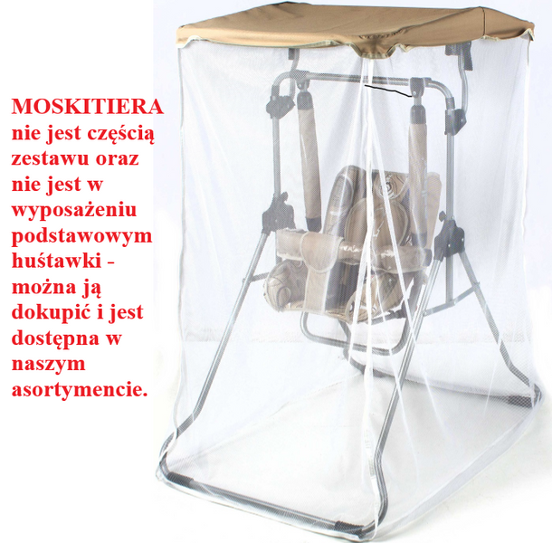 Uzupełnieniem mogą być: dopinany stoliczek z pałąkiem blokującym siedzisko, które ułatwią karmienie dziecka, a także daszek na stelażu.