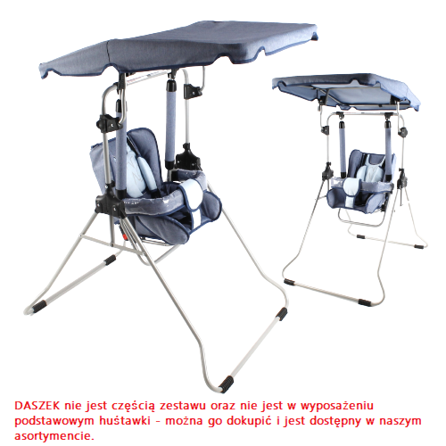 Uzupełnieniem mogą być: dopinany stoliczek z pałąkiem blokującym siedzisko, które ułatwią karmienie dziecka, a także daszek na stelażu.