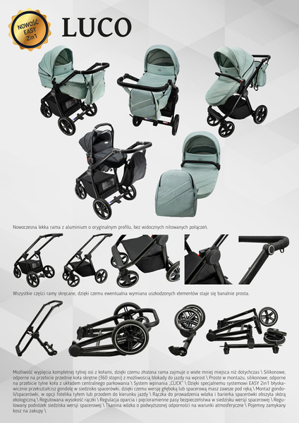 • Montaż gondoli, siedziska, fotelika tyłem lub przodem do kierunku jazdy