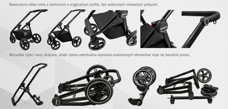 • Montaż gondoli, siedziska, fotelika tyłem lub przodem do kierunku jazdy