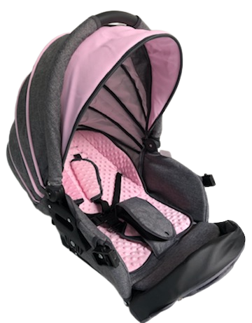 możliwość dokupienia fotelika samochodowego CAPRI, który posiada specjalne adaptery umożliwiające montaż do konstrukcji i przeznaczony jest dla dzieci o wadze 0-10 kg - kolor fotelika będzie w tej samej kolorystyce co wózek i z tego samego materiału.