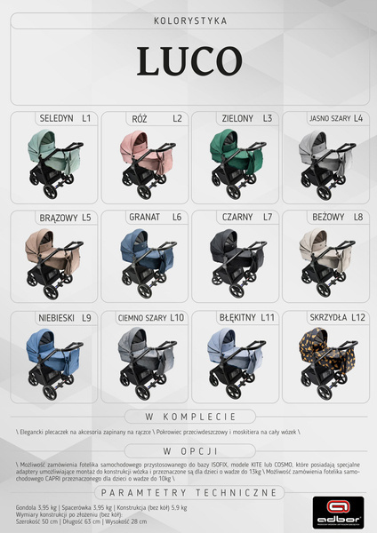 Wózek dziecięcy ADBOR LUCO 3w1 + Torba + Pokrowiec + Moskitiera + Fotelik CAPRI Czarny (kolor: L9)