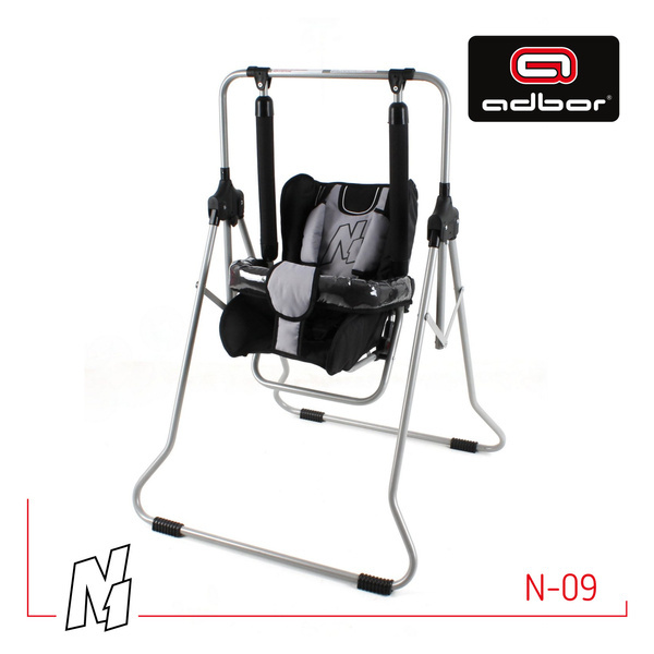 Huśtawka N1 wyposażona jest w barierkę, pięciopunktowe szelki zabezpieczające dziecko przed wypadnięciem, regulowane oparcie posiadające specjalne zabezpieczenie przed złożeniem, wysokiej jakości materiał oraz dodatkowe wypełnienie z gąbki, którym wyłożone jest całe siedzisko.
