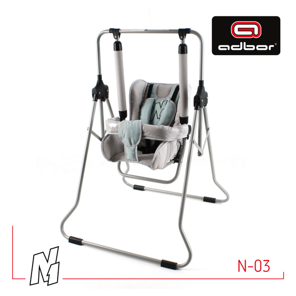 Huśtawka N1 wyposażona jest w barierkę, pięciopunktowe szelki zabezpieczające dziecko przed wypadnięciem, regulowane oparcie posiadające specjalne zabezpieczenie przed złożeniem, wysokiej jakości materiał oraz dodatkowe wypełnienie z gąbki, którym wyłożone jest całe siedzisko.