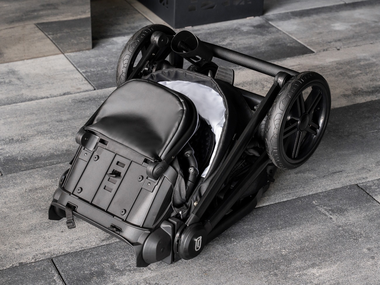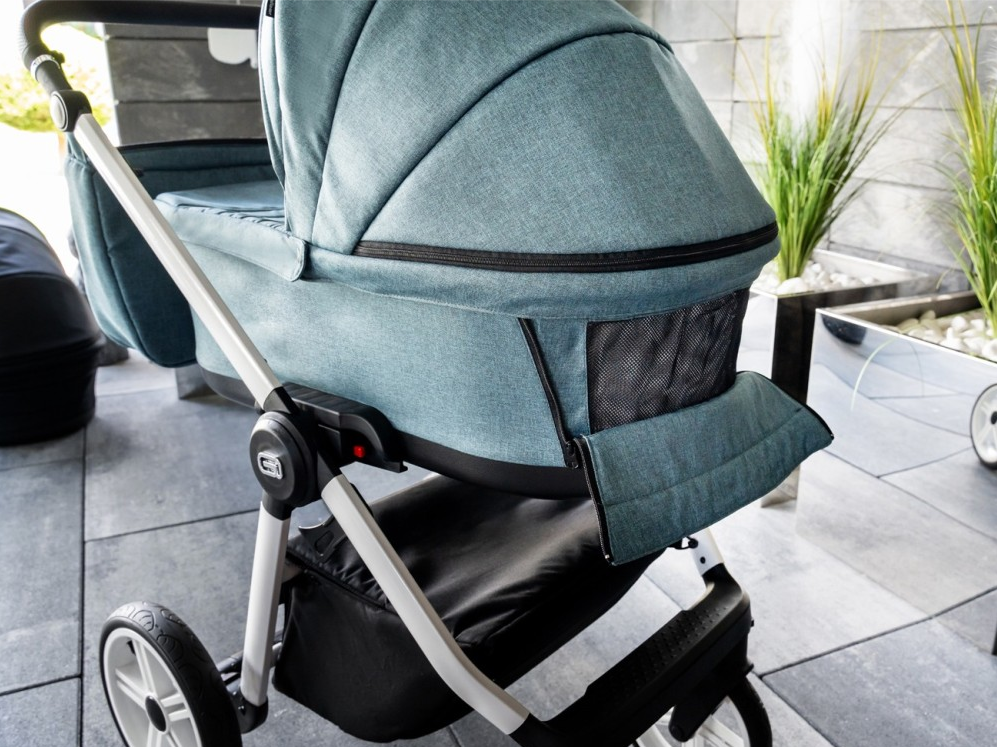 Składana bardzo lekka gondola zajmuje bardzo mało miejsca podczas transportu, a dzięki materiałowym ściankom i poczwórnej wentylacji jest komfortowa dla dziecka.