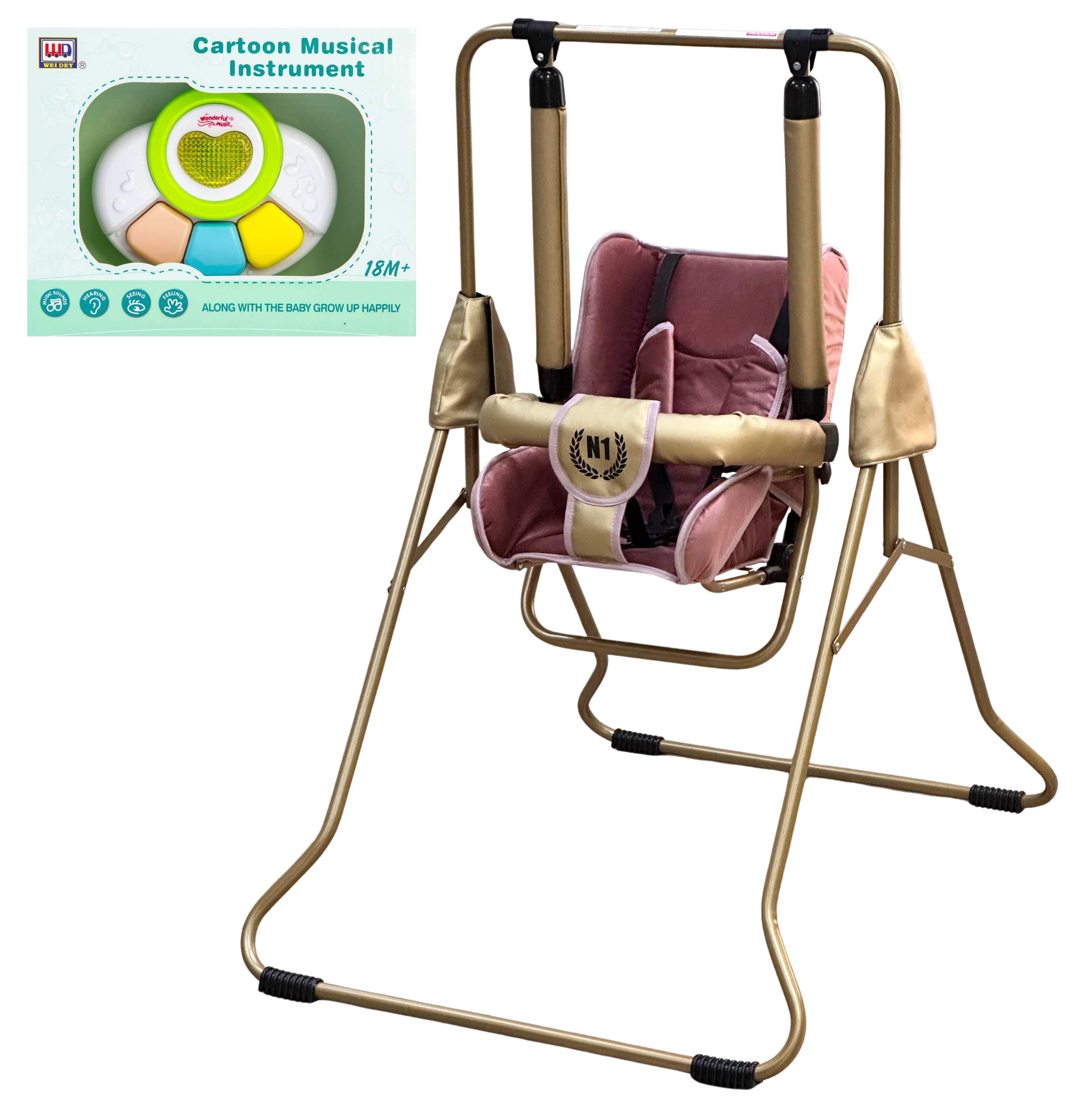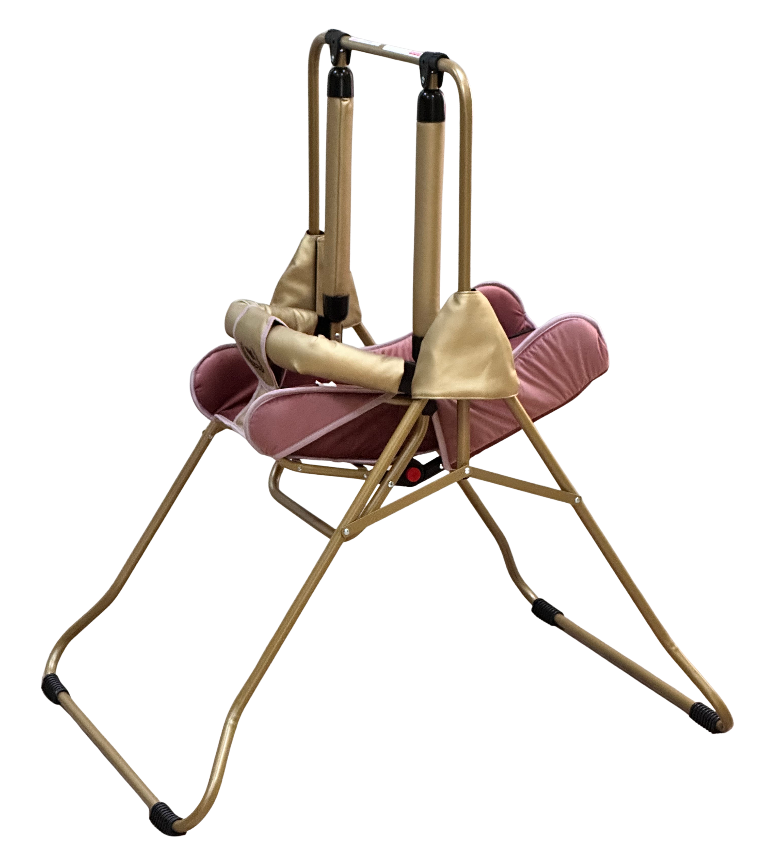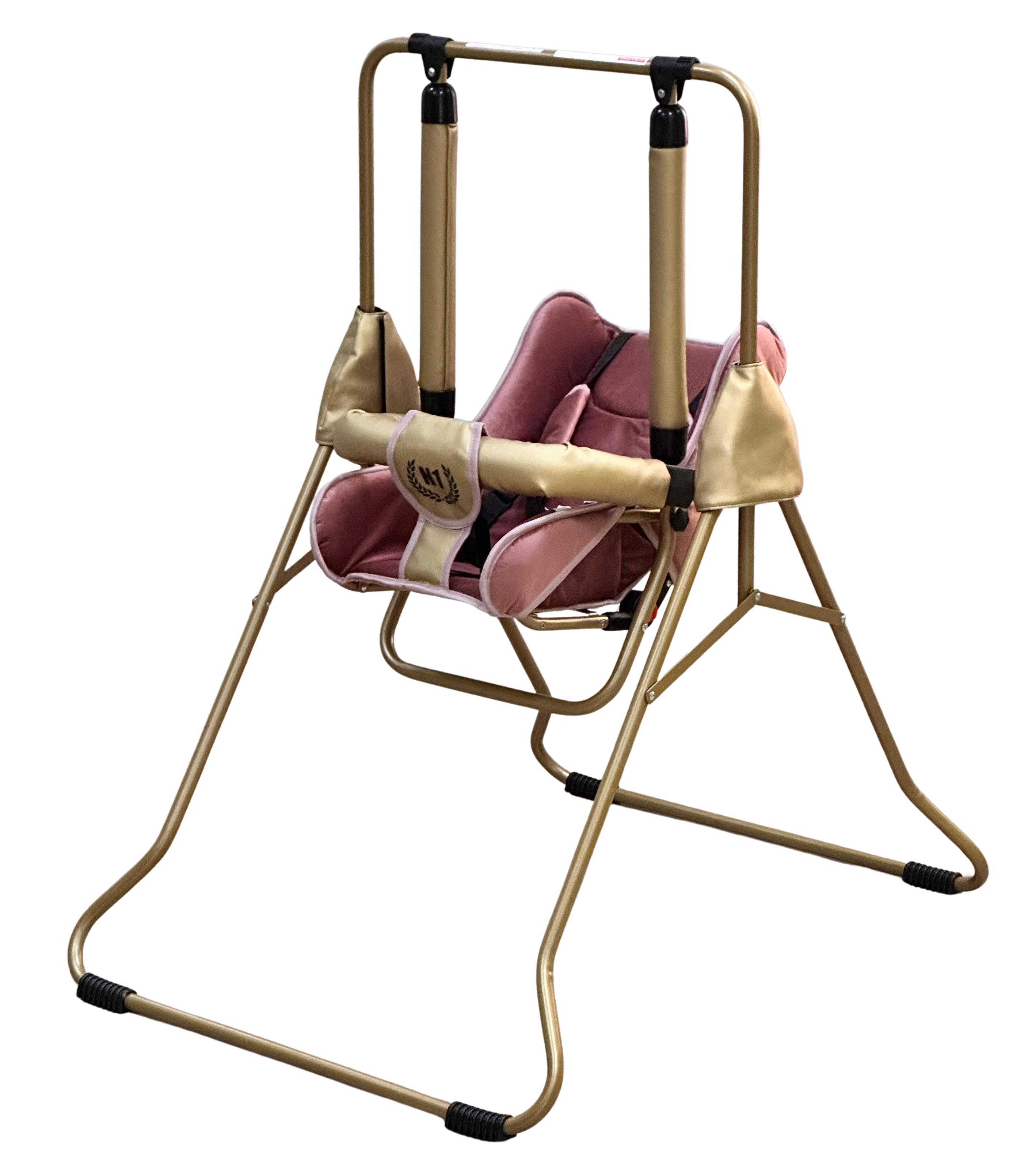 Huśtawka N1 GOLD wyposażona jest w barierkę, pięciopunktowe szelki zabezpieczające dziecko przed wypadnięciem, regulowane oparcie posiadające specjalne zabezpieczenie przed złożeniem oraz wysokiej jakości welurowy materiał oraz dodatkowe wypełnienie z gąbki, którym wyłożone jest całe siedzisko. Huśtawkę złożoną możesz śmiało postawić za drzwiami by nie zajmowała dużo miejsca.