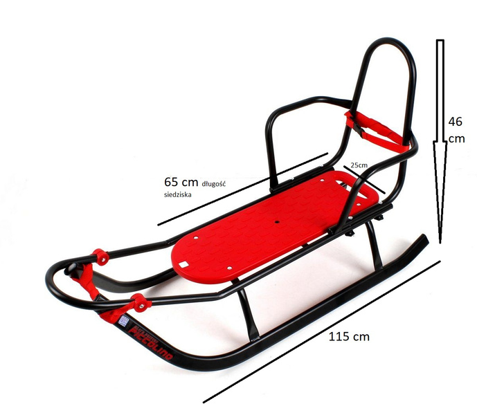 Polskie Sanki metalowe Adbor Piccolino Standard z oparciem i pasami